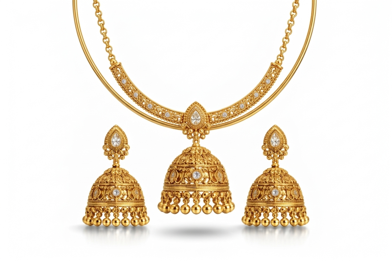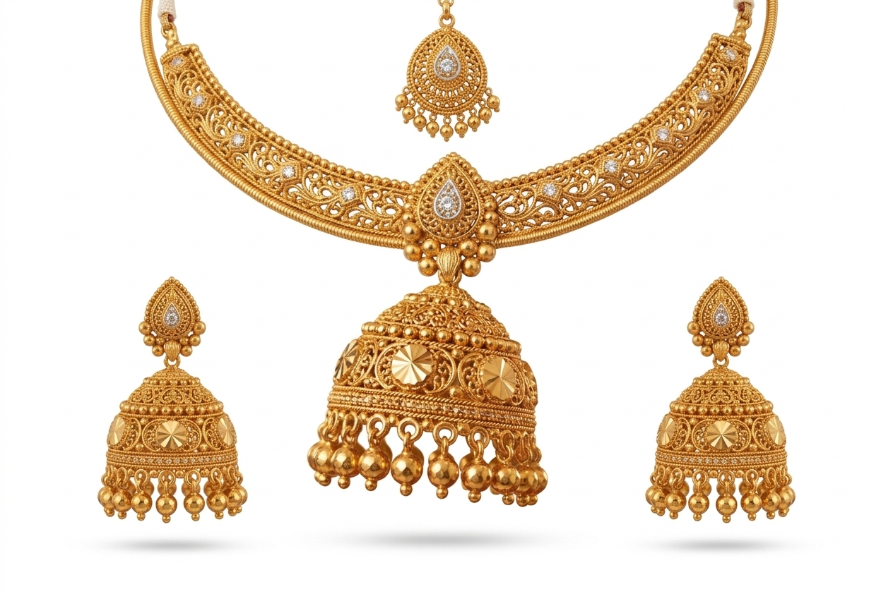 Golden Necklace Set with Earrings – Traditional & Party Wear Jewellery